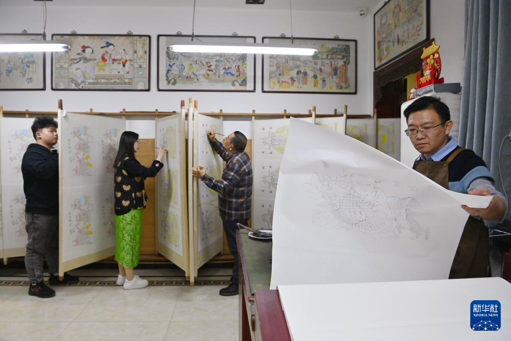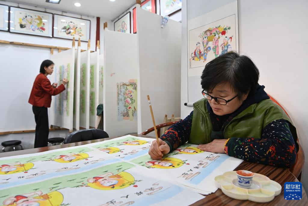 新年将至,在天津市西青区杨柳青古镇,各家年画店铺都迎来赶制年画订单的高峰期。