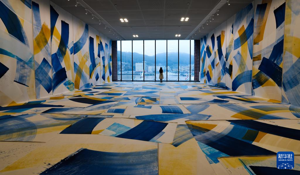 2月27日,一名参观者在舟山美术馆内拍摄。