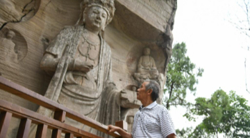 7月10日,观众在南京博物院观看展览的球形视频介绍。