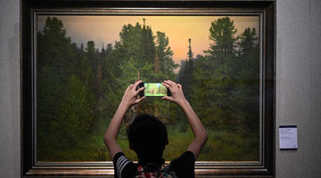 这是8月28日拍摄的展览中的组合人面形铜饰。