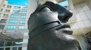 9月27日,观众在中国美术馆参观雕塑作品《苦旅共甘泉》。