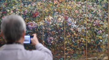 12月30日,观众在“来!听色彩讲故事”故宫教育体验展上用手机参与互动。