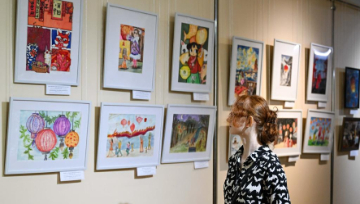 2月24日,人们在山东古建筑博物馆参观万字会旧址济南母院的琉璃影壁。