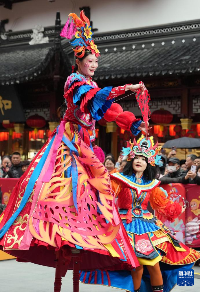 这是3月2日在豫园商城拍摄的民俗文化演出现场。