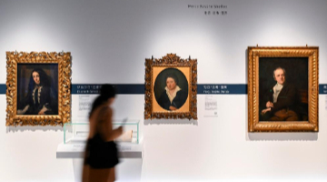 3月25日,观众在比利时布鲁塞尔的画展现场参观。