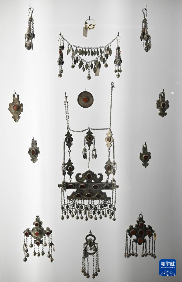 这是4月9日在乌兹别克斯坦努库斯的萨维茨基国家艺术博物馆拍摄的民俗艺术品。