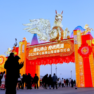 璀璨灯火映南湖,欢歌笑语庆新春。2026唐山南湖春节灯会,以传统为根、以科技为翼、以潮流为韵,不仅让游客在沉浸式体验中感受着新春的喜庆与温暖,更让唐山的城市活力与文化底蕴在光影流转中尽情绽放,为这个新春绘就了一幅传统与现代交融、欢乐与温暖共生的美好画卷。(新华网 李权)
