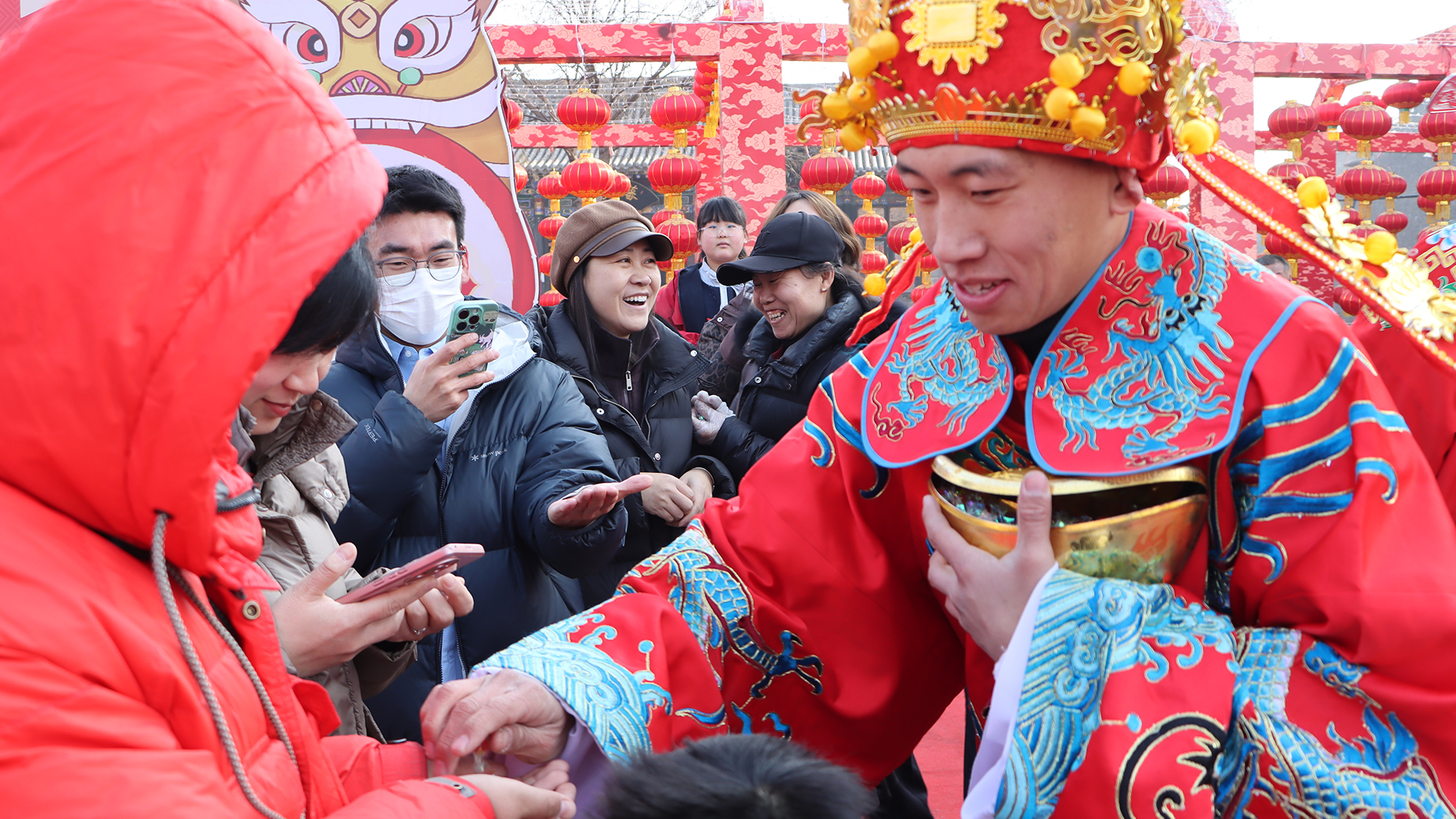 财神巡游,民众争相互动,新春喜庆氛围拉满