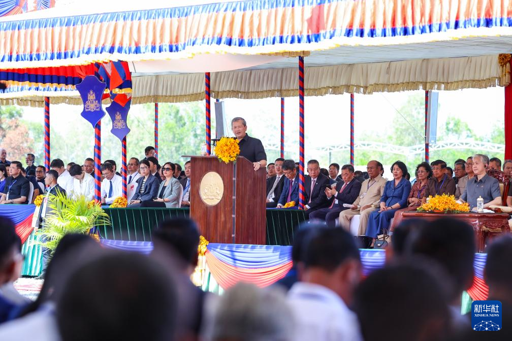 这是4月11日在柬埔寨茶胶省拍摄的扶南德佐综合水利项目第二阶段开工仪式现场。