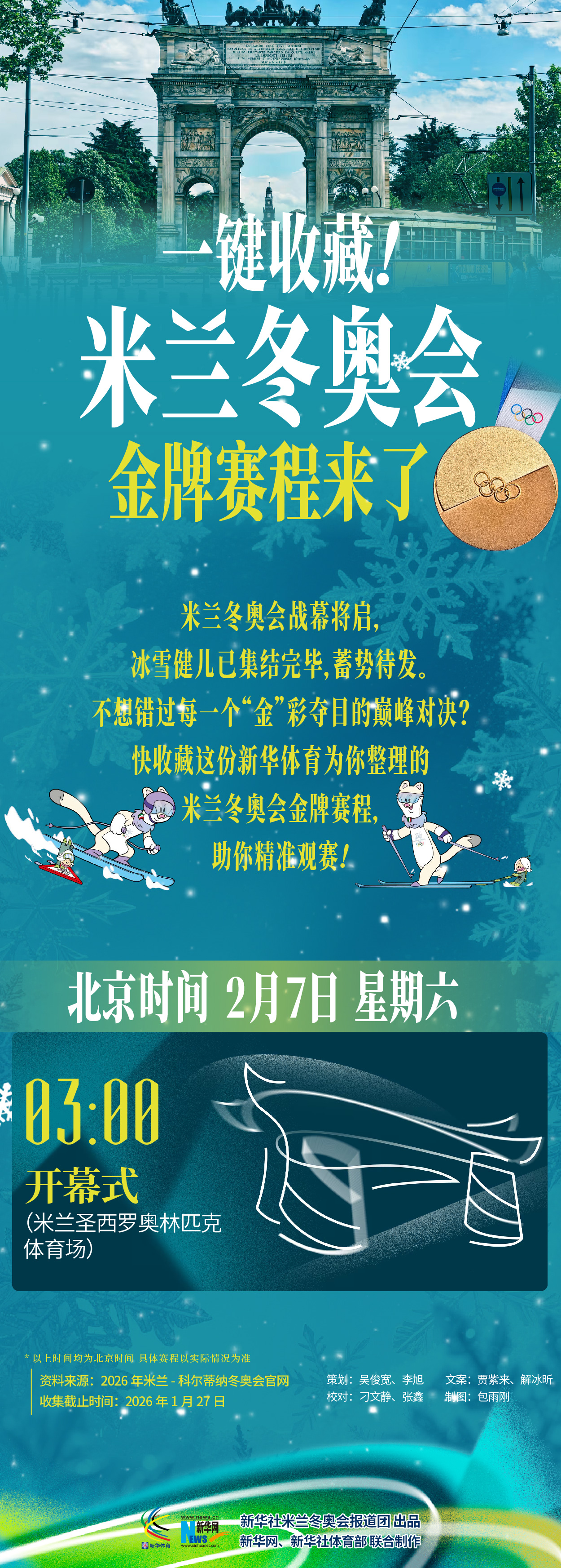 米兰冬奥会战幕将启,冰雪健儿已集结完毕,蓄势待发。不想错过每一个“金”彩夺目的巅峰对决?快收藏这份新华体育为你整理的米兰冬奥会金牌赛程,助你精准观赛!