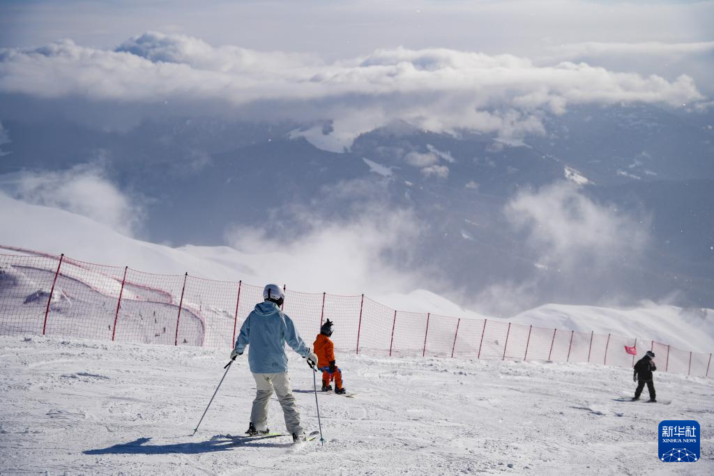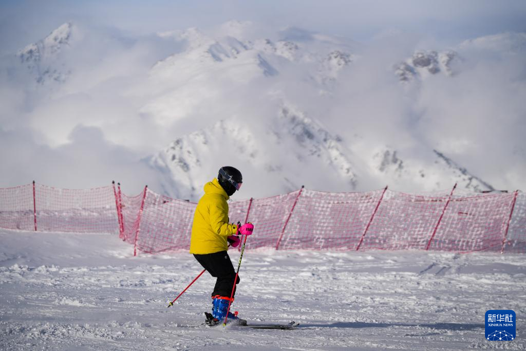 2月4日,滑雪爱好者在新疆阿勒泰地区禾木吉克普林国际滑雪度假区滑雪。
