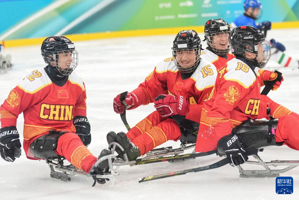 当地时间3月9日,在意大利米兰举行的米兰-科尔蒂纳冬残奥会残奥冰球小组赛A组比赛中,中国队11比1战胜意大利队。