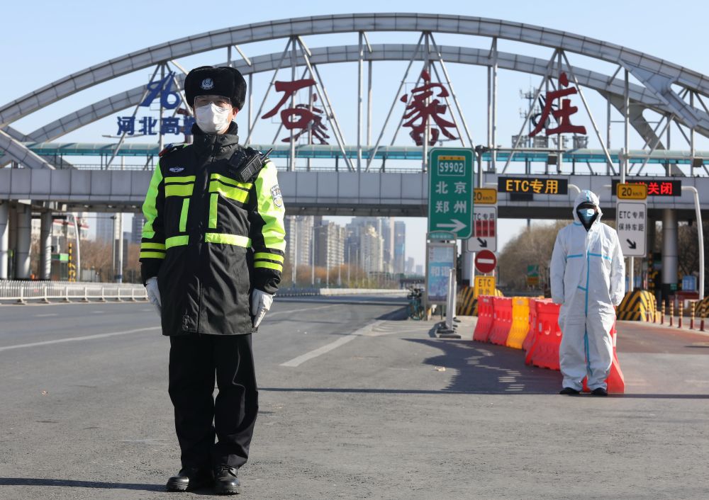 ↑1月7日,石家莊市公安局交通管理局裕華東警務(wù)站民警在新元高速石家莊裕華路進出口執(zhí)勤。