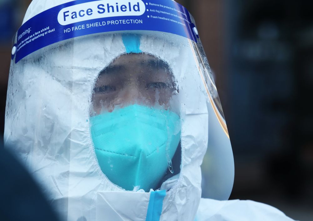 ↑1月7日,在石家莊市裕華區(qū)九里庭院社區(qū),醫(yī)務(wù)人員開展核酸檢測前相互加油鼓氣。
