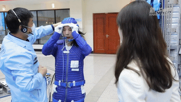 這里是離心機(jī)訓(xùn)練場。離心機(jī)由一個(gè)八米長的旋轉(zhuǎn)臂和飛行模擬座艙組成,它所產(chǎn)生的離心力通常用地心引力的倍數(shù)表示。例如2G等于兩倍地球引力,大概相當(dāng)于過山車從最高點(diǎn)急速俯沖到最低點(diǎn)時(shí)的壓迫感。普通人最多能承受4G的離心力,而像亞平一樣的航天員則要進(jìn)行8G的過載訓(xùn)練。