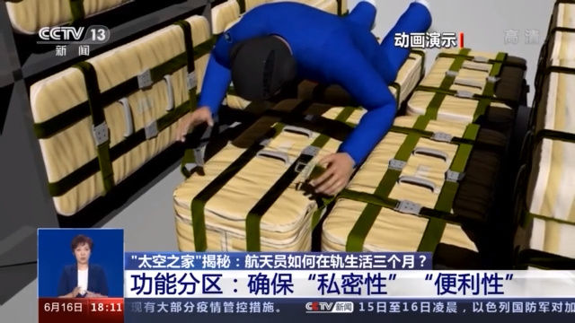據(jù)了解,生活區(qū)內(nèi)有獨(dú)立的睡眠區(qū)、衛(wèi)生區(qū)、鍛煉區(qū),還配有太空廚房、就餐區(qū)和睡眠區(qū)。