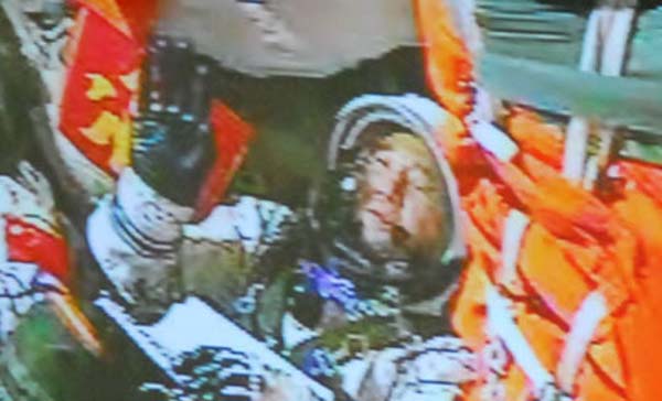 航天員進(jìn)入天宮一號目標(biāo)飛行器后向鏡頭揮手