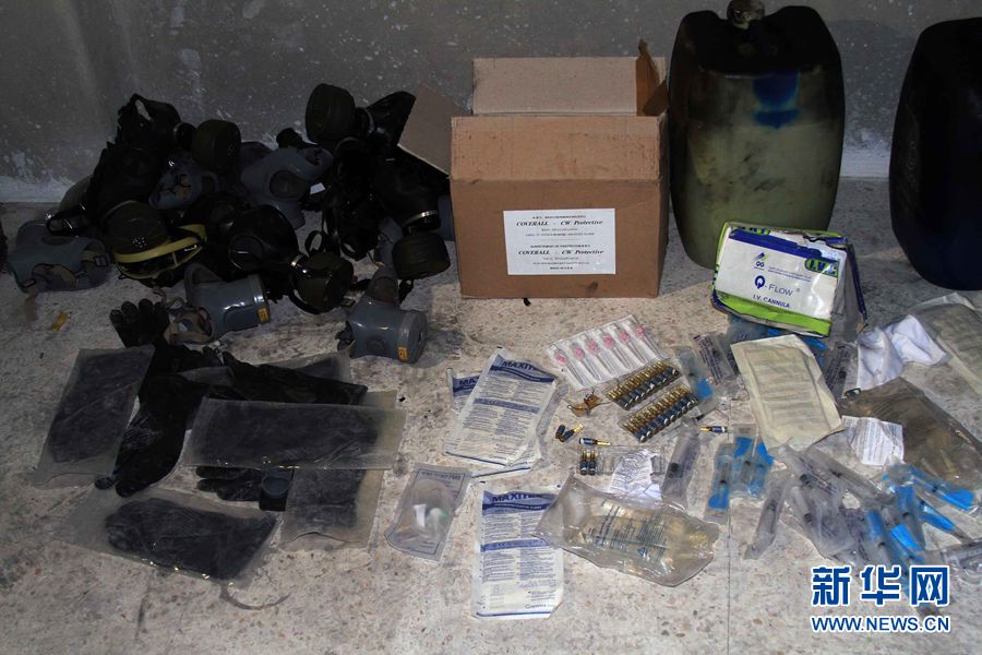 反對(duì)派武裝的地下軍火庫,存有防毒面具、裝有化學(xué)制劑的油桶和盛有針劑大小有毒液體的器皿。