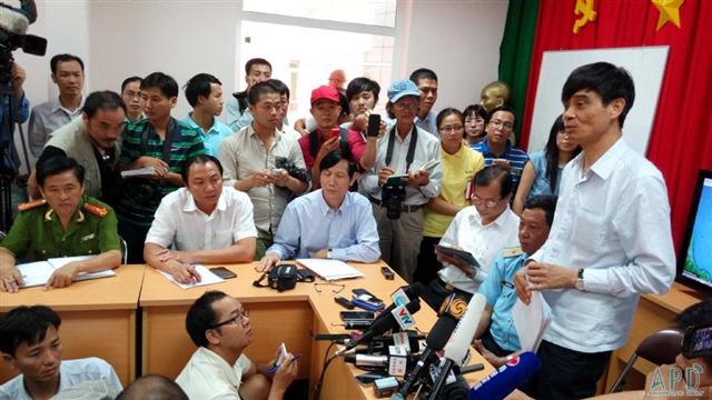 ????設(shè)在富國(guó)島的越南搜救前線(xiàn)指揮辦公室11日召開(kāi)首次聯(lián)席會(huì)議。范貴肖主持會(huì)議并向新聞界通報(bào)越南搜救情況。