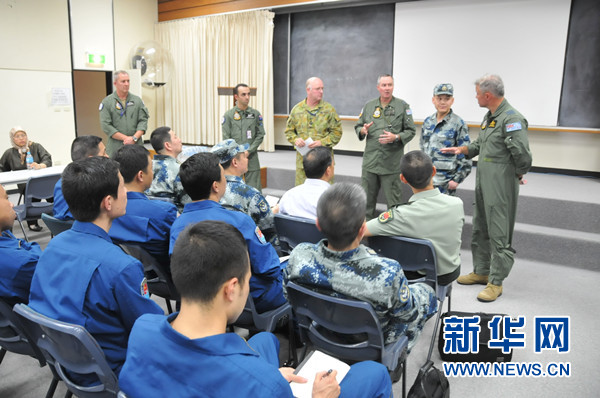????3月22日,中國(guó)空軍飛抵澳大利亞珀斯皮爾斯空軍基地后,與澳大利亞空軍就搜救工作交換意見(jiàn)。新華社記者 黃書(shū)波 攝