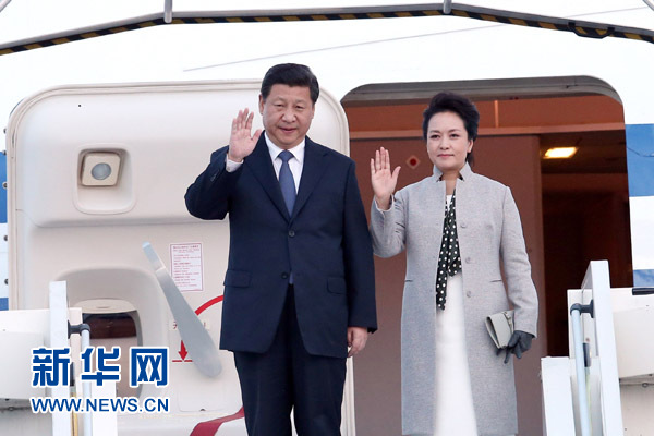 ????當(dāng)?shù)貢r(shí)間25日下午6時(shí)40分許,習(xí)近平乘坐的專機(jī)抵達(dá)里昂機(jī)場(chǎng)。法國外長法比尤斯受法國總統(tǒng)奧朗德指派專程前來迎接習(xí)近平和夫人彭麗媛。羅訥省省長卡朗科、里昂市長科隆也到機(jī)場(chǎng)歡迎。