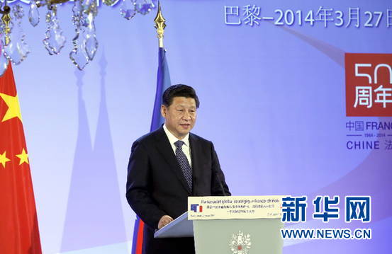 ????新華網(wǎng)巴黎3月27日電(記者李斌 劉華)中法建交50周年紀(jì)念大會(huì)27日在巴黎舉行。國(guó)家主席習(xí)近平和法國(guó)總統(tǒng)奧朗德共同出席并發(fā)表重要講話。習(xí)近平總結(jié)中法關(guān)系50年來(lái)的成功經(jīng)驗(yàn),闡述對(duì)兩國(guó)關(guān)系發(fā)展的政策主張,希望中法兩國(guó)人民在實(shí)現(xiàn)中國(guó)夢(mèng)和法國(guó)夢(mèng)的過(guò)程中相互理解、相互幫助,共同實(shí)現(xiàn)“中法夢(mèng)”。