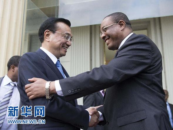 飛機下面,紅地毯已經鋪好。埃塞總理海爾馬里亞姆夫婦已經等在機場。他們?yōu)槔羁藦姺驄D準備了一場隆重的歡迎儀式。李克強與埃塞俄比亞總理海爾馬里亞姆直接用英語對話,沒有用翻譯。