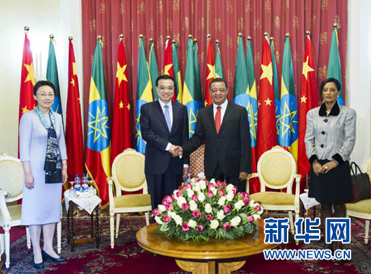 國務(wù)院總理李克強(qiáng)當(dāng)?shù)貢r間6日上午在亞的斯亞貝巴國家宮會見埃塞俄比亞總統(tǒng)穆拉圖。