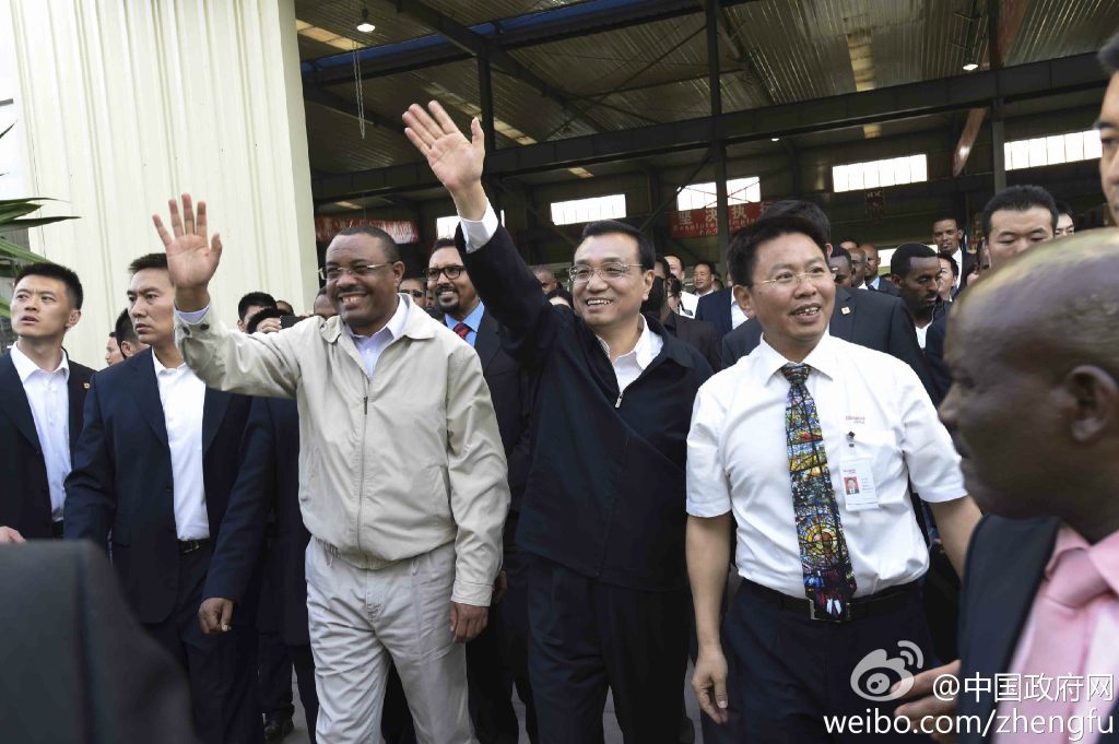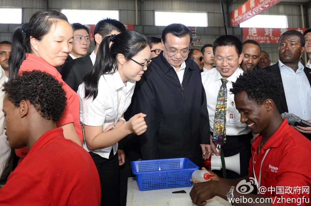 新華網(wǎng)北京5月6日電 據(jù)中國政府網(wǎng)微博報道,5日下午,李克強在埃塞總理陪同下參觀東方工業(yè)園。該園由中方投資興建,目前已為當?shù)靥峁?000余個就業(yè)崗位。李克強說,中國愿意把可轉(zhuǎn)移的勞動密集型產(chǎn)業(yè)優(yōu)先轉(zhuǎn)移到非洲,帶動當?shù)鼐蜆I(yè),促進發(fā)展,增強非洲自我發(fā)展能力,造福雙方人民。