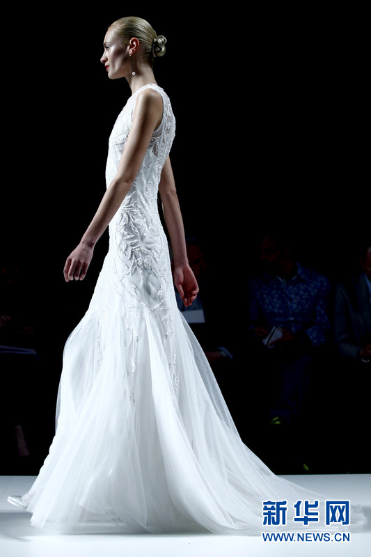 特在T臺上展示西班牙女服裝設(shè)計(jì)師Rosa Clara的婚紗作品。Rosa Clara同時也是來自巴塞羅那當(dāng)?shù)氐囊粋€婚紗品牌。