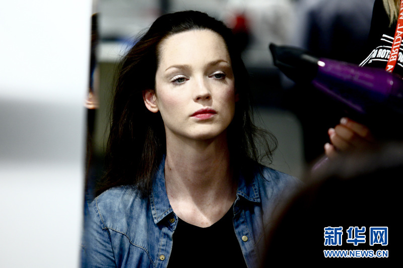 場(chǎng)外正在準(zhǔn)備登臺(tái)展示婚紗的模特。