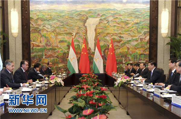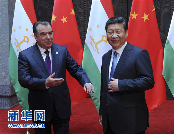????習近平表示,中方始終視塔吉克斯坦為好鄰居、好朋友、好伙伴,支持塔吉克斯坦維護國家穩(wěn)定、促進經(jīng)濟發(fā)展、提高人民生活水平。去年中塔建立戰(zhàn)略伙伴關系以來,兩國關系發(fā)展進入新階段,各領域合作勢頭很好。雙方要加緊制定《中塔2015-2020年戰(zhàn)略伙伴關系合作綱要》,如期推進中國-中亞天然氣管道工程以及塔方輸變電線路改造、交通和邊境口岸基礎設施建設、工業(yè)園、農(nóng)業(yè)技術示范園區(qū)等合作項目,促進文化、教育、旅游合作,加強執(zhí)法安全和防務合作,共同打擊“三股勢力”、販毒和跨國犯罪。中方全力支持和配合塔方辦好今年9月舉行的上海合作組織杜尚別峰會,推動本組織向團結更緊密、合作更務實、行動更有效的方向發(fā)展。