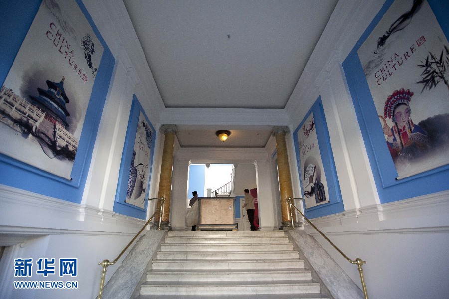 ??? 9日,工作人員在為即將揭幕、舉行首展的“哥本哈根中國文化中心”布置展品。哥本哈根中國文化中心是北歐地區(qū)第一家中國文化中心,位于丹麥?zhǔn)锥几绫竟兄行闹陌餐缴蠼?6號。這幢歷史悠久的黃色建筑建于1906年,使用面積2400多平方米,其前身是著名的丹麥皇家音樂學(xué)院.文化中心11日將舉行揭幕儀式。吳波攝