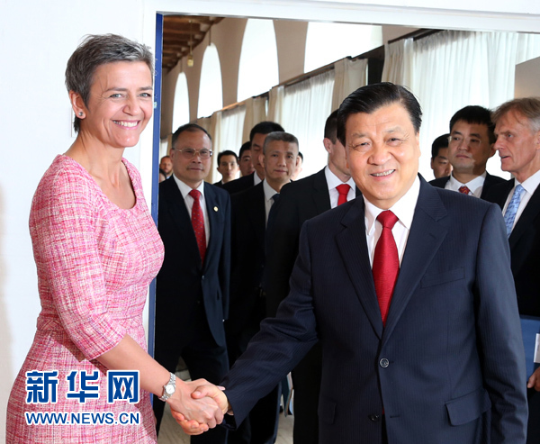 ??? 6月11日,正在丹麥進行正式訪問的中共中央政治局常委、中央書記處書記劉云山在哥本哈根會見丹麥經濟內政大臣瑪格麗特·韋斯塔格。新華社記者姚大偉攝
