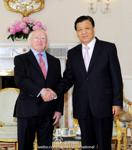 ??? 新華網(wǎng)北京6月18日電 據(jù)新華社“新國際”微博報道,中共中央政治局常委、中央書記處書記劉云山17日結(jié)束愛爾蘭之行。他在會見愛總統(tǒng)希金斯時說,中國與愛爾蘭雖相距遙遠(yuǎn),但在雙邊和國際事務(wù)中存在廣泛的共同利益,兩國關(guān)系成為不同幅員、制度、發(fā)展階段國家平等相待、友好合作的典范。