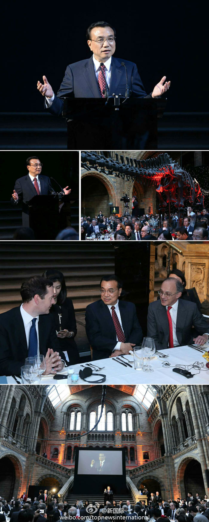 ??? 新華網(wǎng)北京6月18日電 據(jù)新華社“新國(guó)際”微博報(bào)道,李克強(qiáng)17日在倫敦的自然歷史博物館出席英中工商界歡迎晚宴并致辭。李克強(qiáng)說(shuō),訪英行程不到24小時(shí)已碩果累累。中英簽署多項(xiàng)政府間和商業(yè)協(xié)議,但這不是簡(jiǎn)單的買賣關(guān)系,而是有質(zhì)量、更深入的投資關(guān)系。中英合作不僅雙贏,并會(huì)走向第三方,讓世界受益。