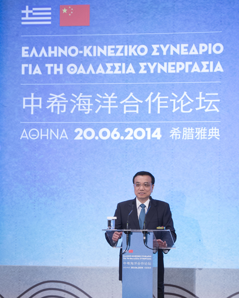 ??? 李克強(qiáng)總理20日在中希海洋合作論壇上說(shuō),海洋承載著世界經(jīng)濟(jì)發(fā)展與合作共贏的希望。連接各大洲的眾多航線構(gòu)成全球經(jīng)濟(jì)一體化大通道,承載著國(guó)際貿(mào)易最活躍部分。中國(guó)愿同海洋國(guó)家一道,積極構(gòu)建海洋合作伙伴關(guān)系,共同建設(shè)海上通道、發(fā)展海洋經(jīng)濟(jì)。
