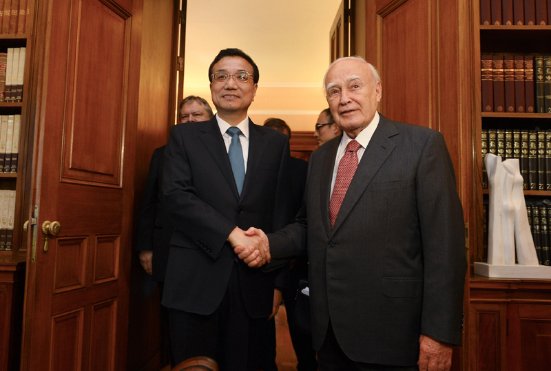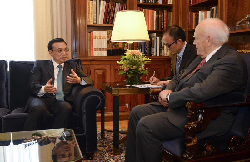 【李克強(qiáng):中國將希臘視為在歐盟的好朋友和好伙伴】李克強(qiáng)總理當(dāng)?shù)貢r間20日下午在雅典總統(tǒng)府會見希臘總統(tǒng)帕普利亞斯。李克強(qiáng)表示,中希傳統(tǒng)友誼深厚,互信日益鞏固,合作不斷深化。中國將希臘視為在歐盟的好朋友和好伙伴,希望希臘作為歐盟輪值主席國,為促進(jìn)中歐關(guān)系發(fā)展發(fā)揮更大作用。