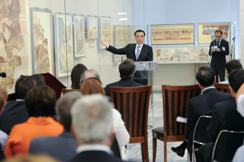 ??? 【李克強(qiáng)引中希先哲名言談兩國(guó)合作】李克強(qiáng)21日在伊拉克利翁博物館新館開(kāi)館儀式上談到中希合作潛力時(shí),引用古希臘哲學(xué)家赫拉克利特名言:“人不能兩次踏進(jìn)同一條河流”與中國(guó)思想家孔子名言:“逝者如斯夫,不舍晝夜”。李克強(qiáng)說(shuō),中希合作機(jī)不可失、時(shí)不我待,期待兩國(guó)深挖潛力,合作之路越走越寬。