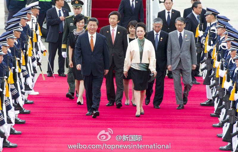 ??? 新華網(wǎng)北京7月3日電 據(jù)新華社“新國際”微博報(bào)道,禮兵注目,禮炮鳴響。3日中午,習(xí)近平主席的專機(jī)穩(wěn)穩(wěn)降落在首爾城南機(jī)場,習(xí)近平和夫人彭麗媛走下舷梯,受到韓方熱烈歡迎。這是習(xí)近平擔(dān)任國家主席后首次訪韓。2005年、2009年,他曾兩次訪問韓國。?