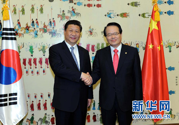 ????鄭義和表示,中國是韓國的好鄰居,韓方感謝中國堅定致力于維護半島和平穩(wěn)定,支持朝鮮半島實現(xiàn)和平統(tǒng)一。習(xí)近平主席同樸槿惠總統(tǒng)就加強兩國合作達(dá)成許多重要共識,相信習(xí)近平主席這次訪問必將有力推動韓中關(guān)系邁上新臺階。韓國國會希望加強同中國全國人大交往,為促進韓中關(guān)系發(fā)展作出貢獻。實現(xiàn)東北亞持久和平,必須建立在對歷史的共同認(rèn)識基礎(chǔ)上。韓國國會提議成立韓中日歷史研究共同委員會,交流對歷史問題的認(rèn)識,樹立正確歷史觀。