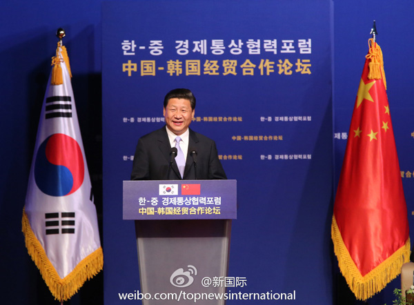 ????新華網(wǎng)北京7月4日電 據(jù)新華社“新國際”微博報道,習近平指出,中國對韓投資尚處于起步,“小荷才露尖尖角”,但只要精耕細作,一定會蓮香十里飄。中國人民銀行和韓國銀行簽訂了在首爾建立人民幣清算安排的備忘錄,確定中國交通銀行擔任首爾人民幣清算銀行,這將有利于促進中韓兩國貿(mào)易、投資自由化便利化。