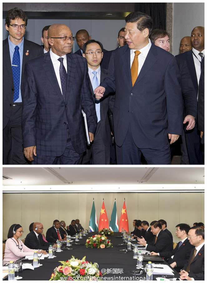 ???? 新華網(wǎng)北京7月15日電 據(jù)新華社“新國際”微博報(bào)道,習(xí)近平主席14日在巴西會見南非總統(tǒng)祖馬。習(xí)近平指出,和平與發(fā)展是非洲的主題。中非是命運(yùn)共同體,我們愿意同非洲國家分享發(fā)展經(jīng)驗(yàn),積極參與非洲和平安全事務(wù),推進(jìn)非洲跨國跨區(qū)域互聯(lián)互通項(xiàng)目,為促進(jìn)非洲一體化作出更大貢獻(xiàn)。?