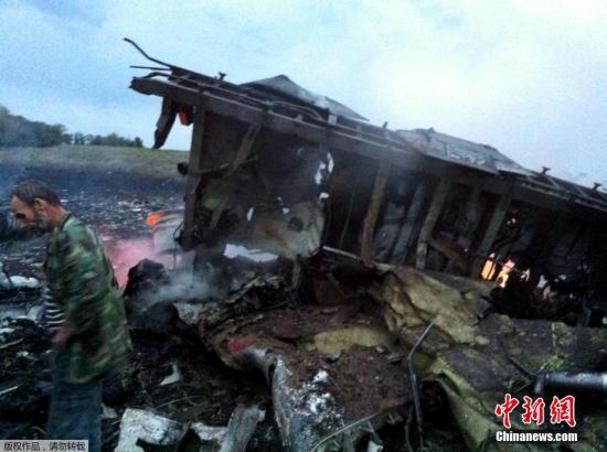 7月17日,據(jù)路透社消息,馬來西亞一架載有295人的777客機在烏克蘭靠近俄羅斯邊界墜毀。另據(jù)國際文傳電訊社消息,墜毀機型為一架波音777客機,機載約280名乘客和15個機組人員。圖為馬航波音777客機在頓涅茨克地區(qū)墜毀的現(xiàn)場。
