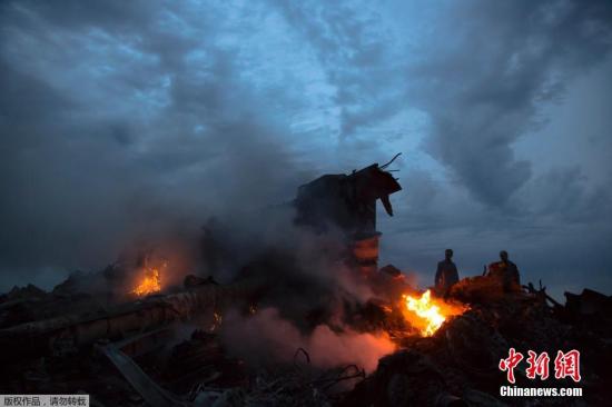 7月17日,馬來西亞一架載有295人的777客機(jī)在烏克蘭靠近俄羅斯邊界墜毀。圖為馬航波音777客機(jī)在頓涅茨克地區(qū)墜毀的現(xiàn)場。