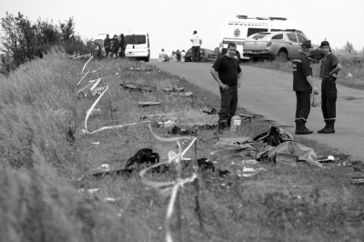 一些記者19日看到民間武裝人員把裝有遺體的袋子裝入卡車,隨后運(yùn)離墜機(jī)現(xiàn)場。截至昨天,全部遺體都已從現(xiàn)場被運(yùn)走,用于標(biāo)記遺體位置的系著白布的小木棍不見蹤影,而緊急情況應(yīng)對(duì)人員繼續(xù)在現(xiàn)場搜集殘骸。