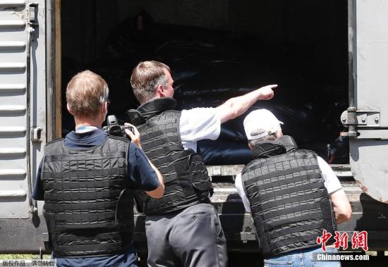 當?shù)貢r間2014年7月20日,烏克蘭頓涅茨克Torez,馬航墜機遇難乘客遺體被裝上列車冷藏車廂將被運走。載有部分遺體的火車從距空難現(xiàn)場不遠的烏克蘭托列茲市出發(fā),前往頓涅茨克市?;疖囯x站前,身處空難現(xiàn)場的歐洲安全與合作組織(歐安組織)代表檢查了運載遺體的5節(jié)冷藏車廂。