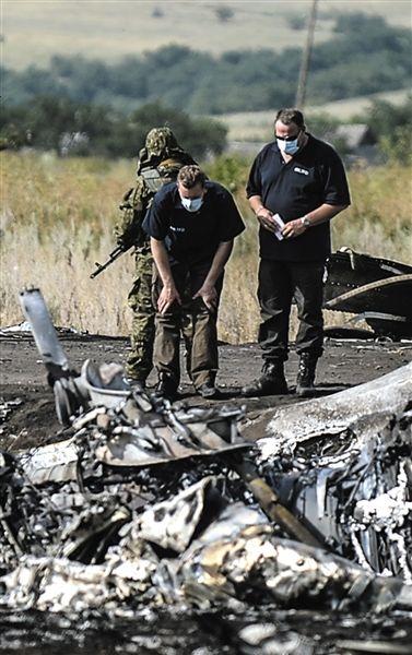 25日,烏克蘭頓涅茨克,調(diào)查人員在馬航墜機(jī)現(xiàn)場。