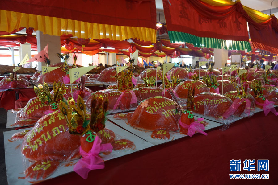 ????8月12日,泰國普吉府舉辦中國傳統(tǒng)的“中元普渡”活動(dòng),以普渡孤魂,表達(dá)仁愛和孝道思想。該活動(dòng)在普吉已有150多年的歷史,每逢中國農(nóng)歷7月,當(dāng)?shù)厝A人便會(huì)舉行祭祀儀式,用面粉和糖制成大小不一的紅色面團(tuán),裝飾成烏龜形狀,既表達(dá)了對于祖先的懷念,還傳遞了對于全家人健康長壽的祝福。圖為活動(dòng)中用于祭祀的烏龜形狀糕點(diǎn)。新華網(wǎng)記者 楊云燕 攝