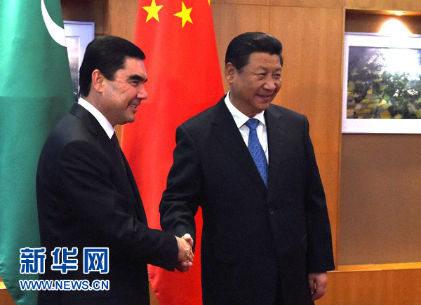 習近平指出,過去一年,我和別爾德穆哈梅多夫總統(tǒng)成功互訪,共同規(guī)劃了中土關系未來發(fā)展,推動了一系列大項目合作,中土戰(zhàn)略伙伴關系實現(xiàn)良好開局,兩國已成為合作共贏的利益共同體和守望相助的命運共同體。雙方要繼續(xù)深化能源合作,確保中國-中亞天然氣管道建設和運營,做好復興氣田二期產(chǎn)能建設。同時,雙方要優(yōu)化貿(mào)易結(jié)構(gòu),逐步擴大電力、制造業(yè)、農(nóng)業(yè)等非能源合作,共同推動絲綢之路經(jīng)濟帶建設,對接兩國發(fā)展戰(zhàn)略,拉動交通、通信等領域合作。雙方要加強油氣管道和大型國際活動安保領域合作,共同打擊“三股勢力”。中方支持土方在中國舉辦文化日活動,愿意幫助土方推廣漢語教學,促進人文交流。